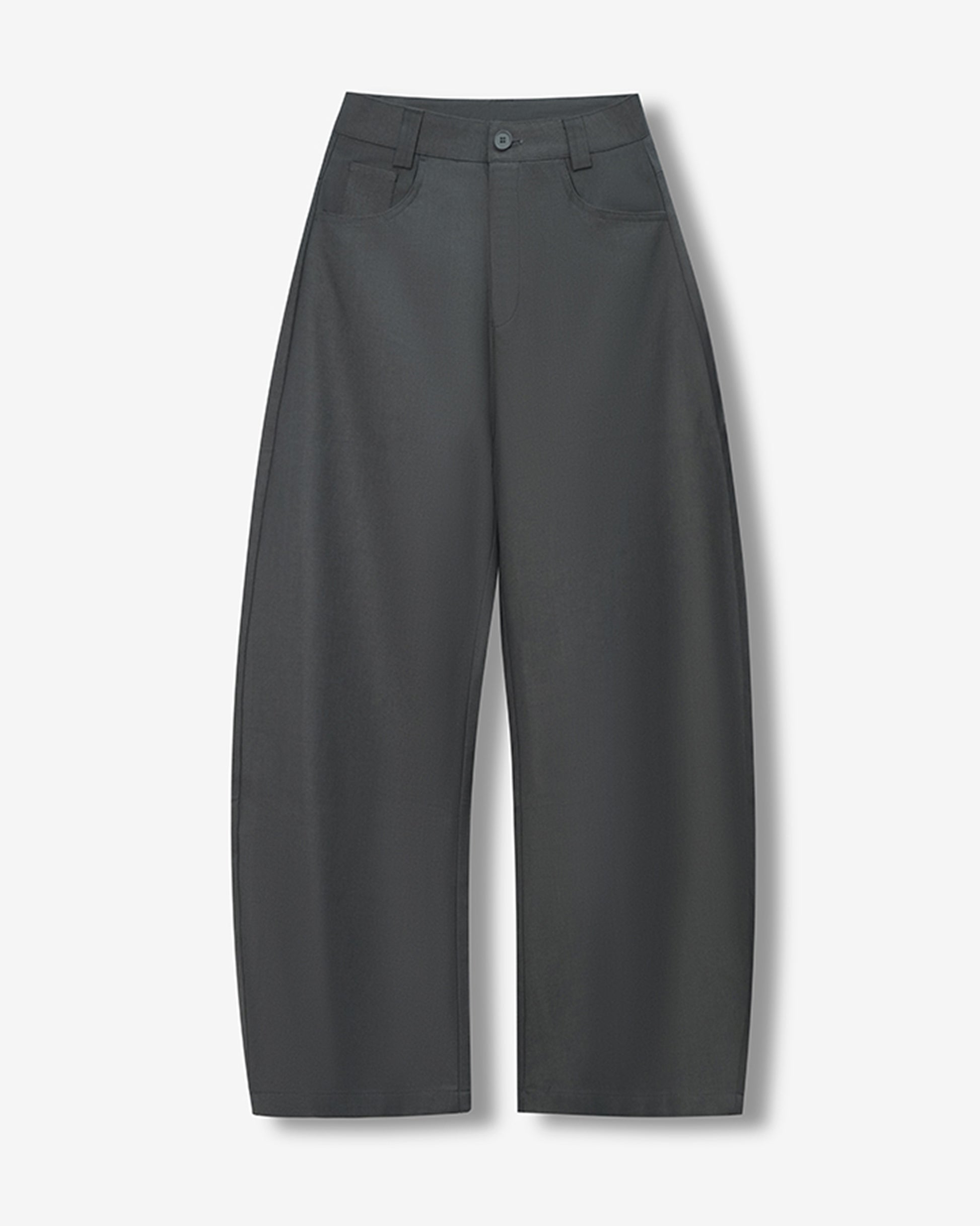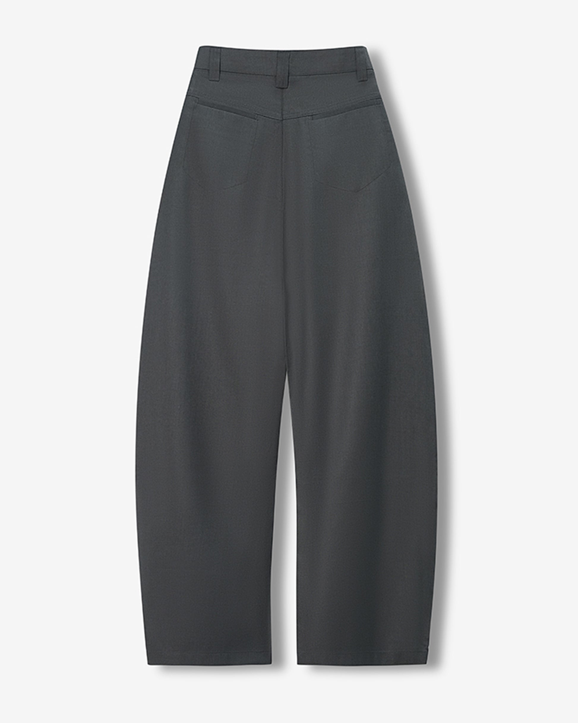 太ももから裾にかけて緩やかなカーブを描く立体パターンで、ワイドながらもルーズすぎず、モードな印象に。