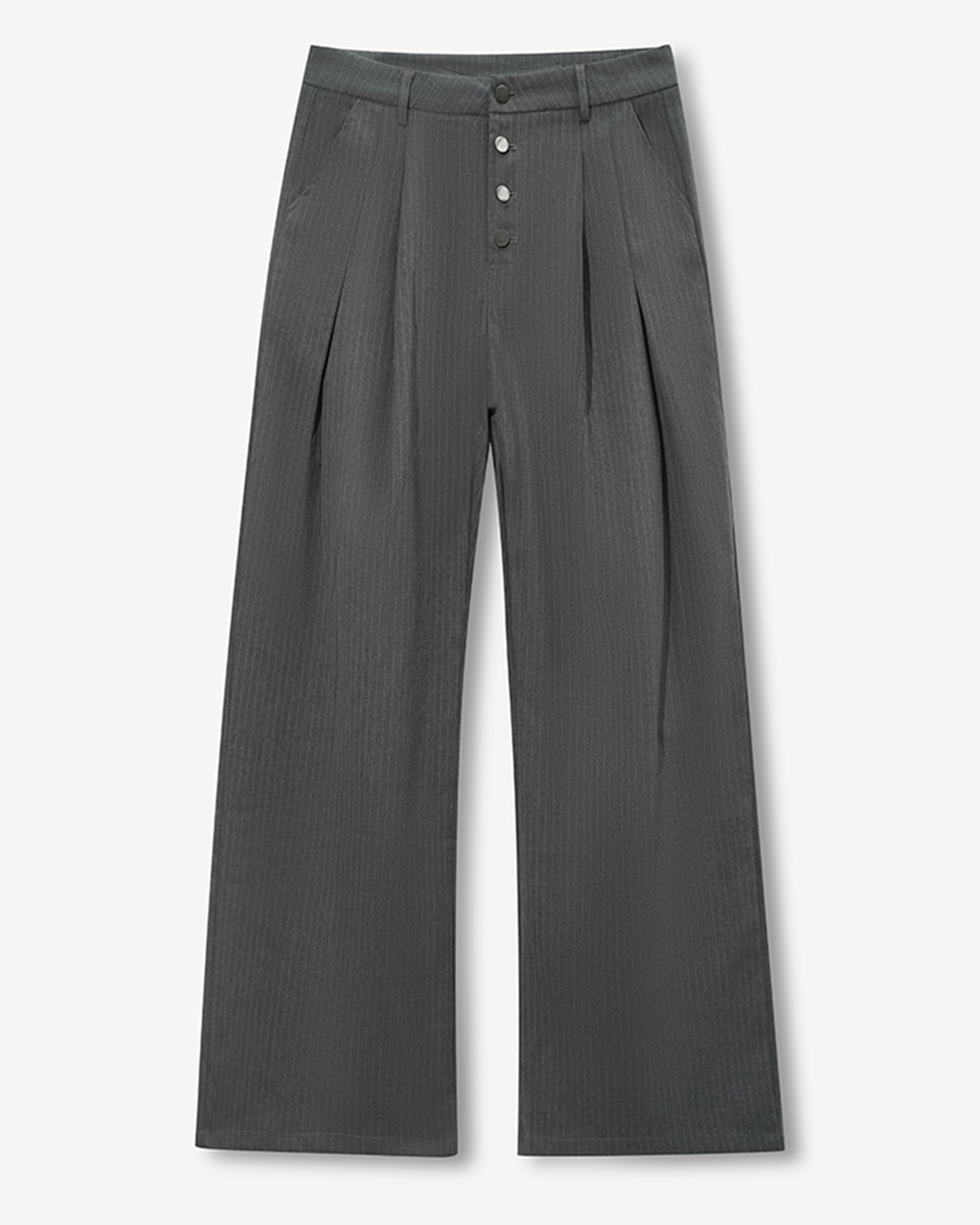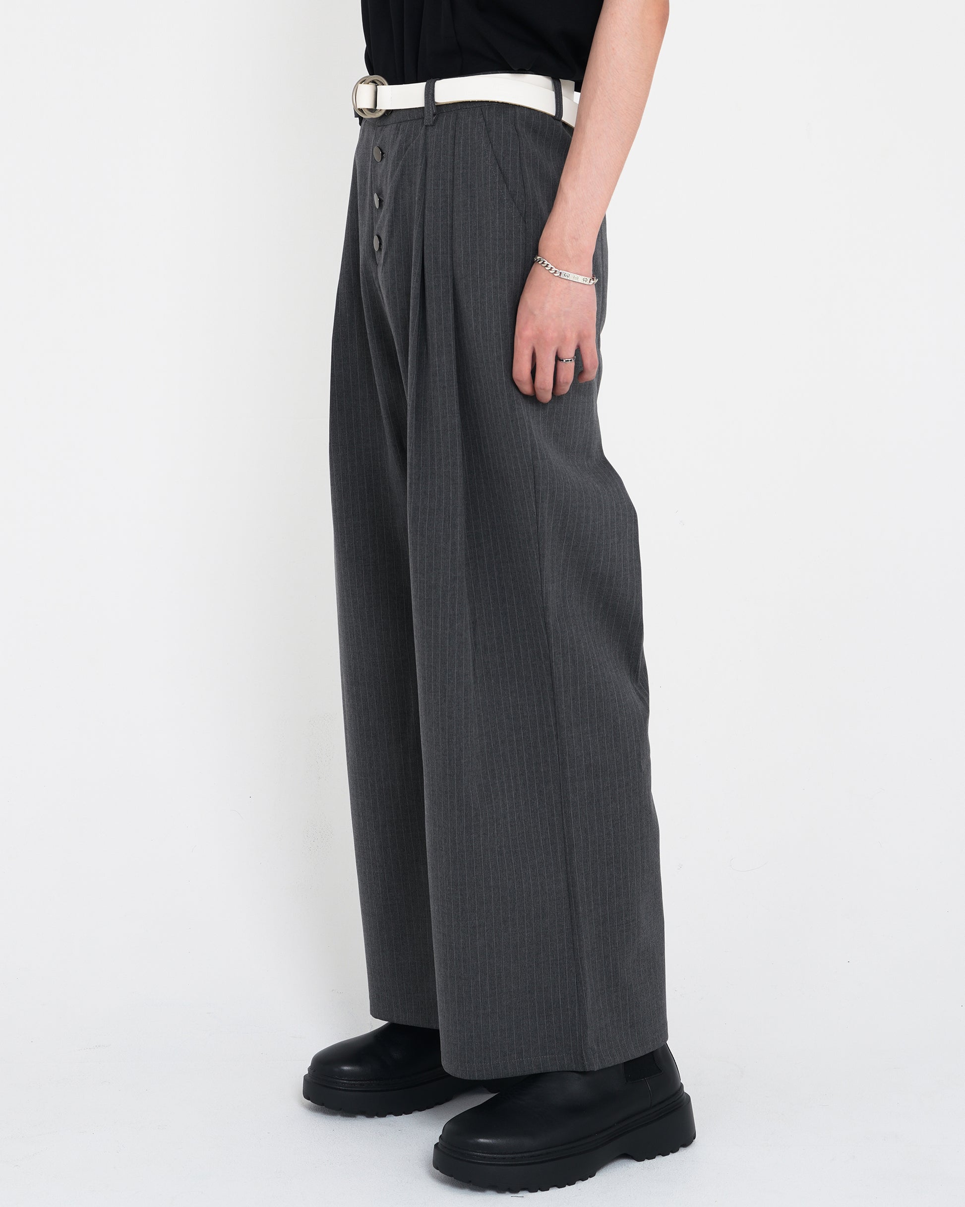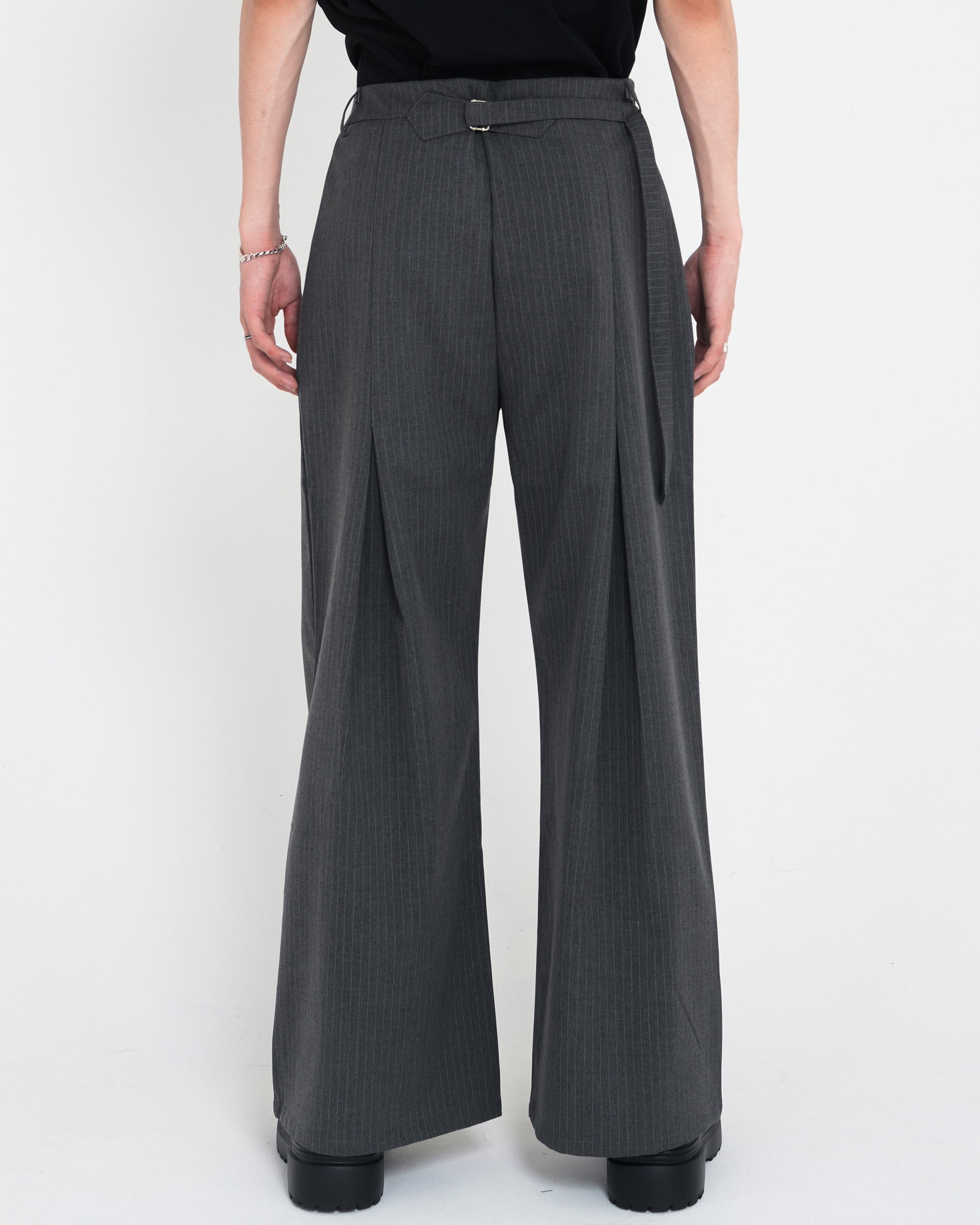 フロントの深いタックが腰回りにゆとりを生み、裾にかけて自然な落ち感を演出。