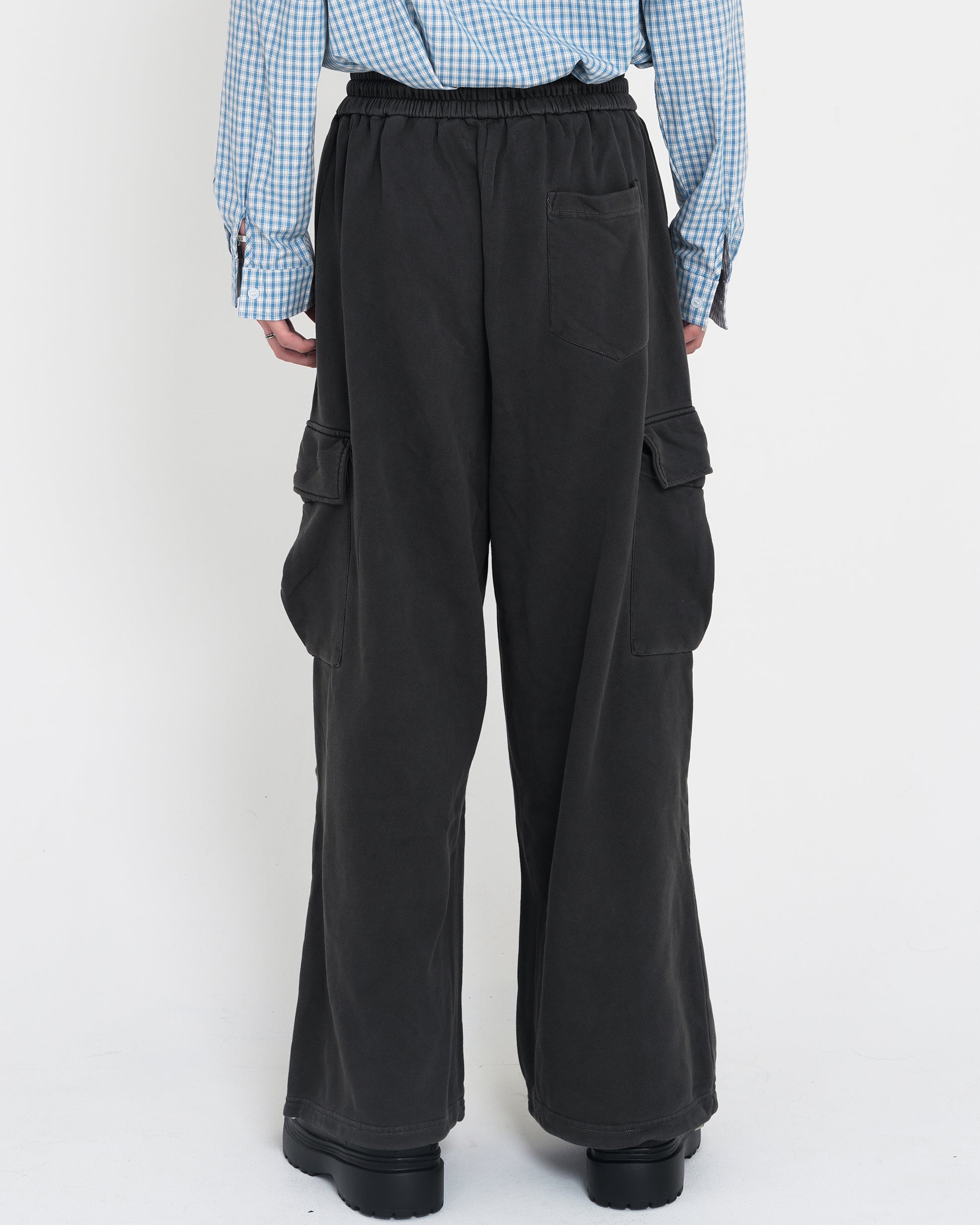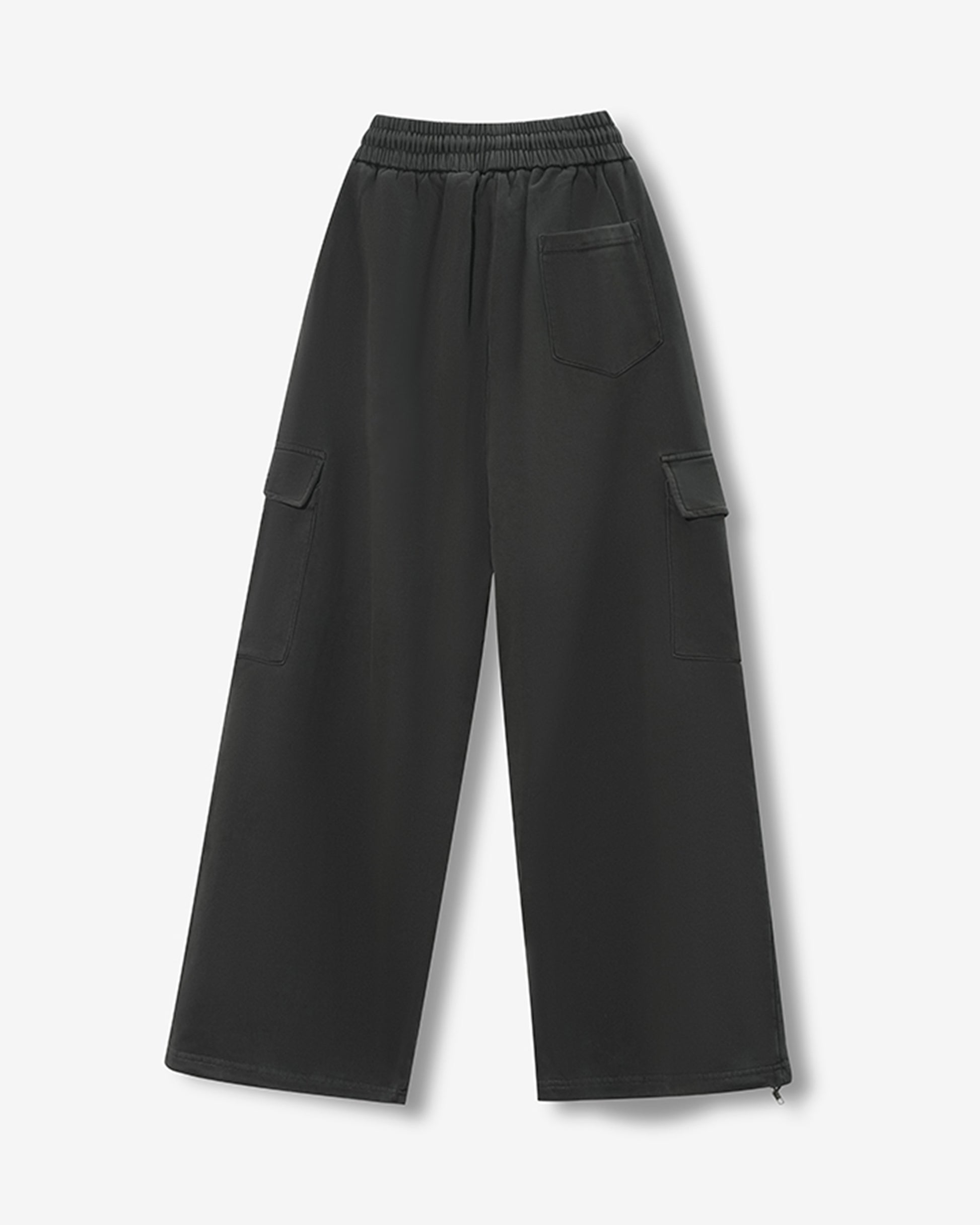 コットン素材を使用したドローストリングワイドスウェットパンツは、ヴィンテージ感のある色合いが魅力。ストレートシルエットでありながら、ゆったりとした履き心地を実現し、カジュアルながらも洗練されたスタイルを楽しめる。ビンテージテイストの風合いがコーディネートに深みを与え、日常のファッションに個性をプラスする一着。