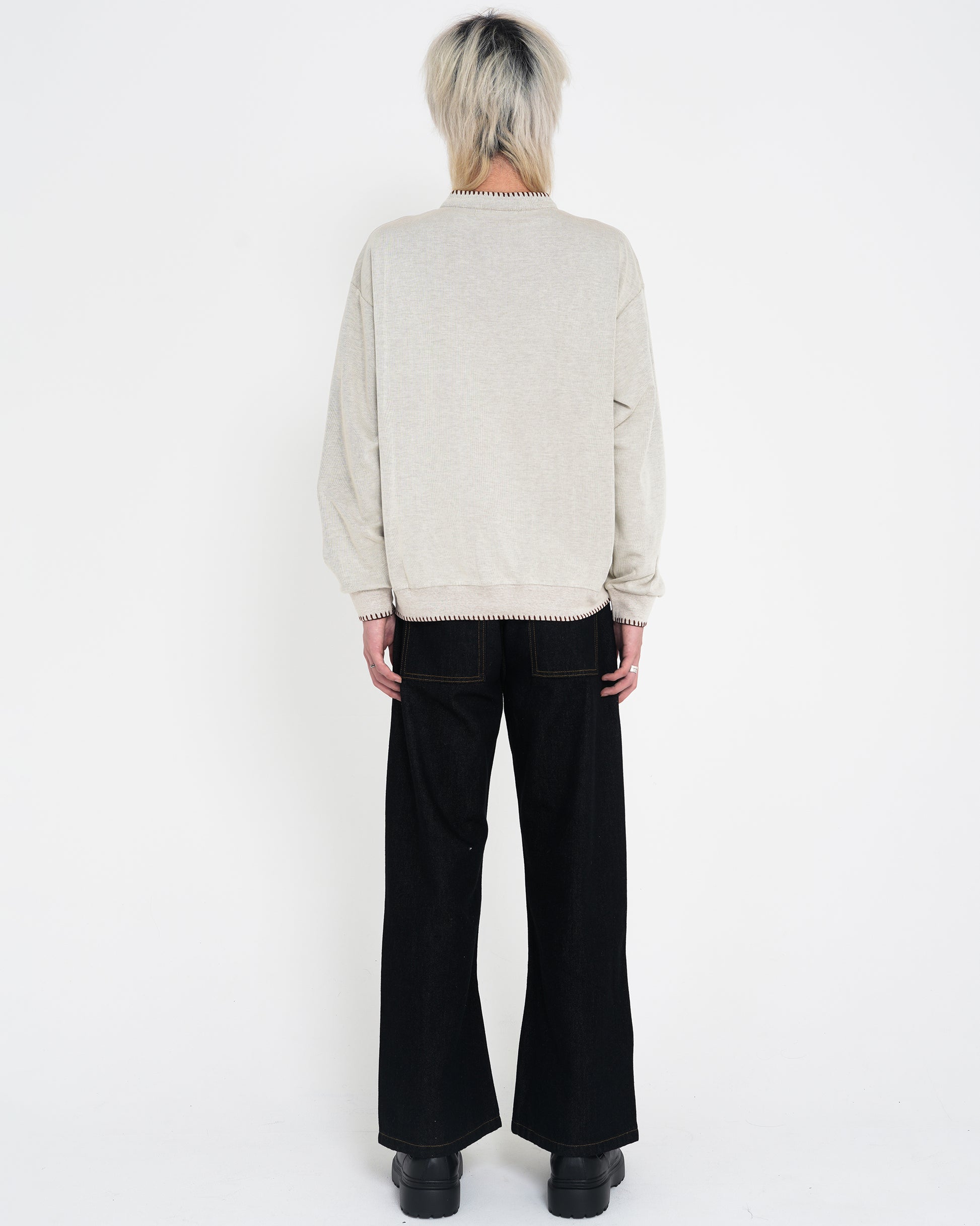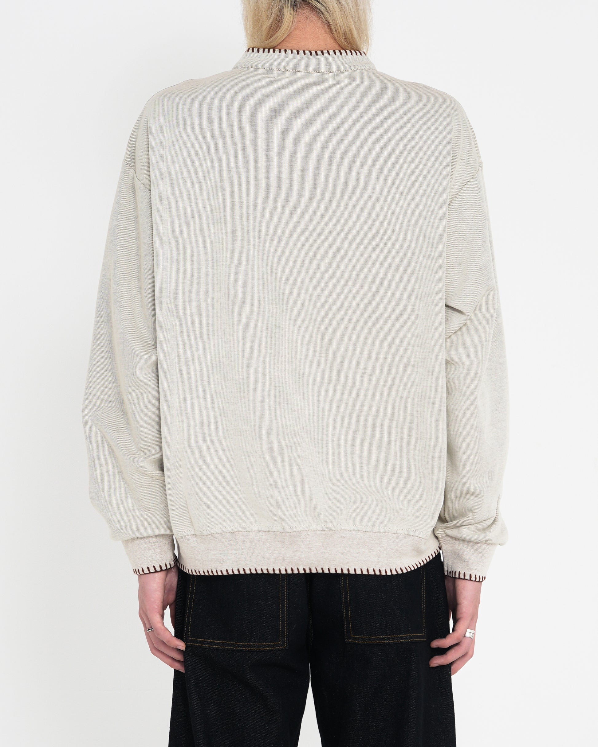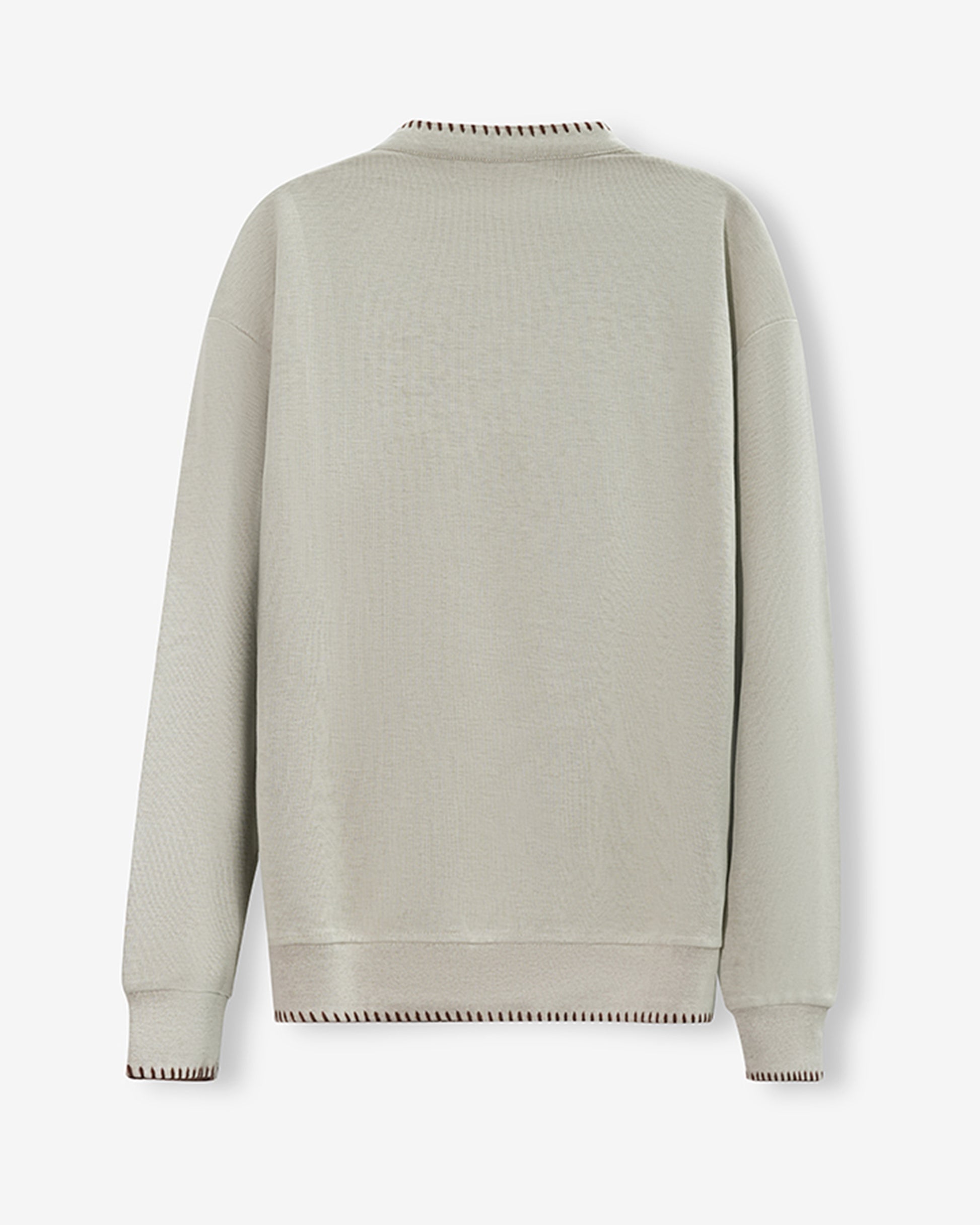 Hand-Stitched Henley Neck Knit Sweatshirt