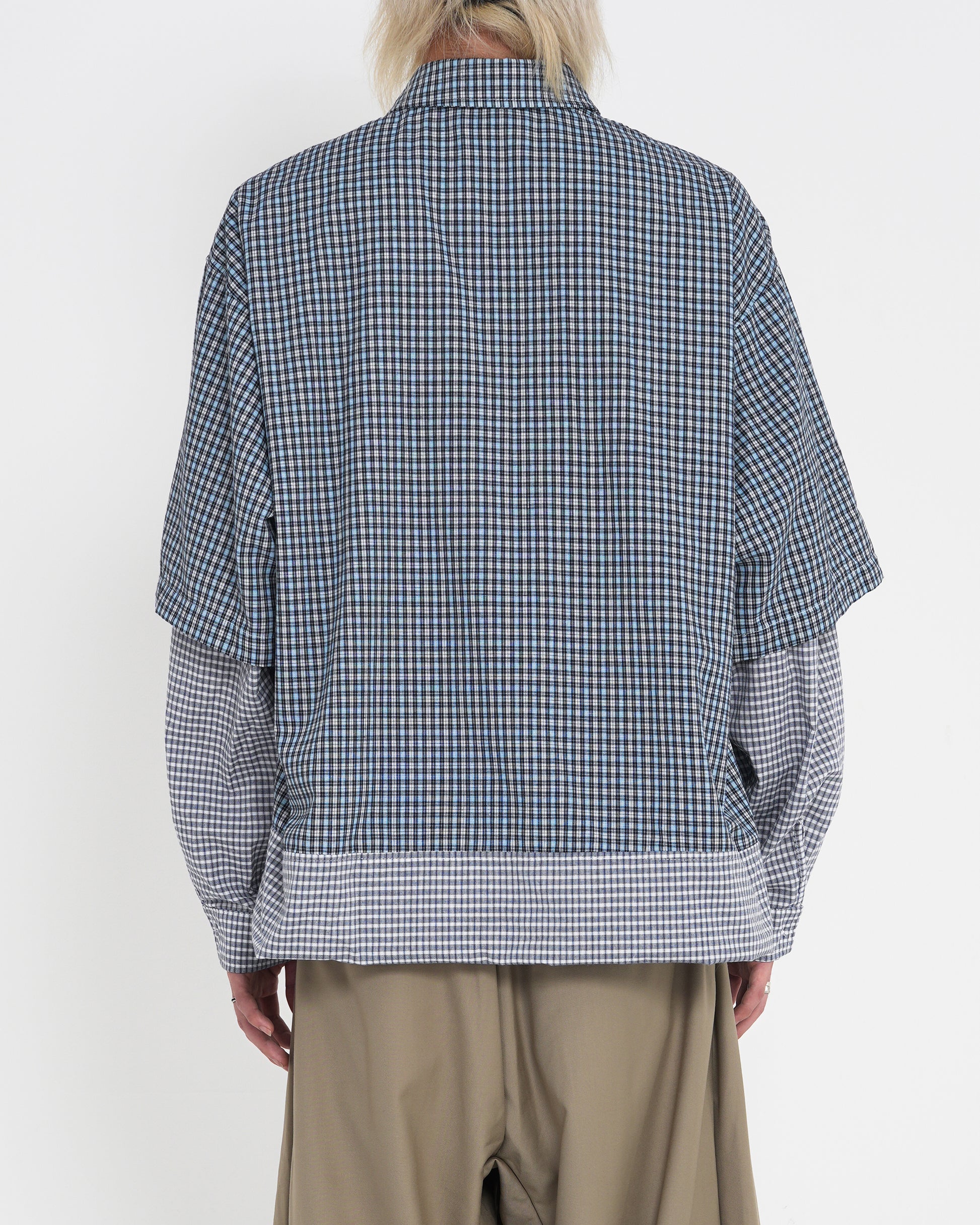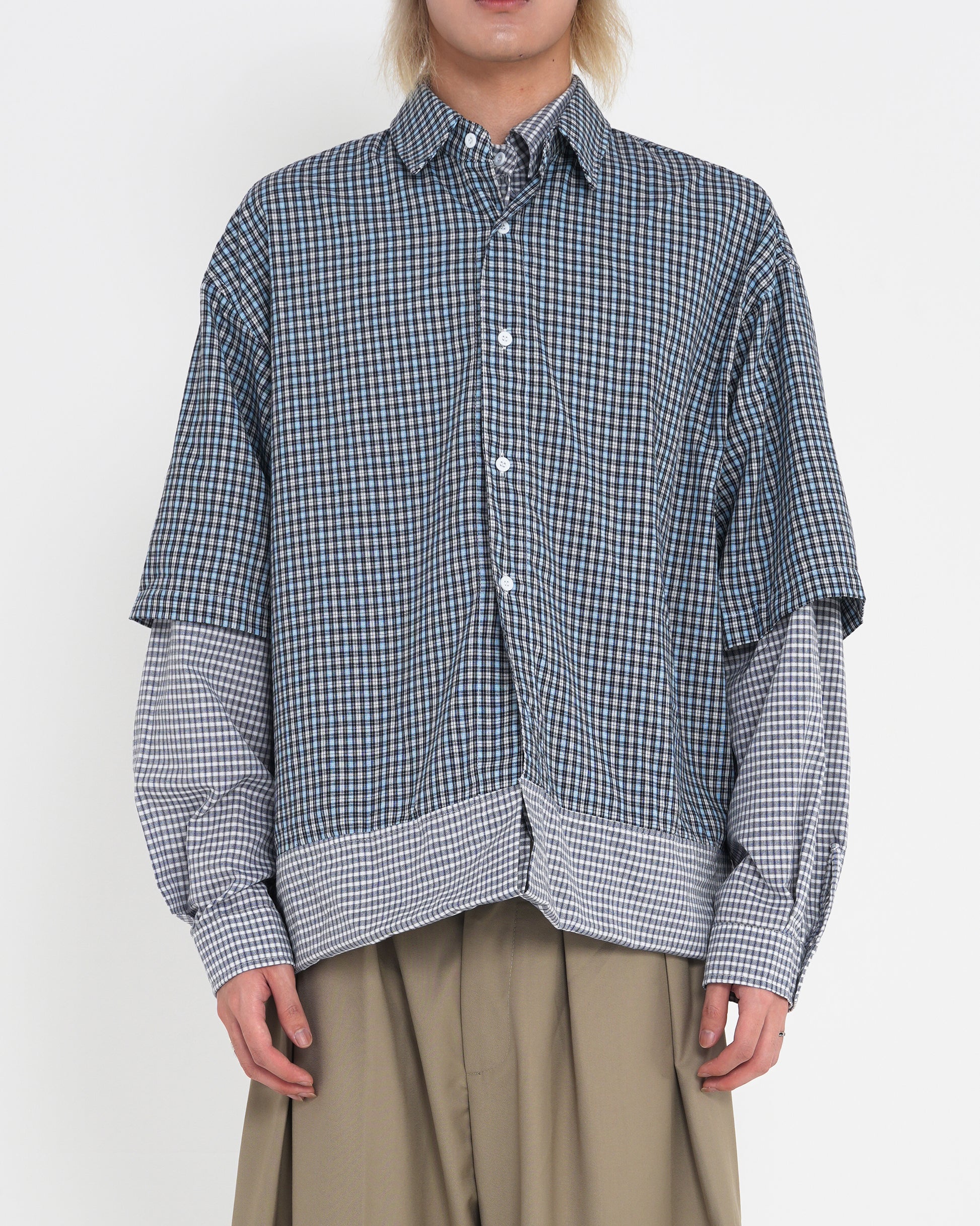 このシャツは、レイヤードデザインと2WAY仕様を融合したモジュラー型ギンガムシャツです。