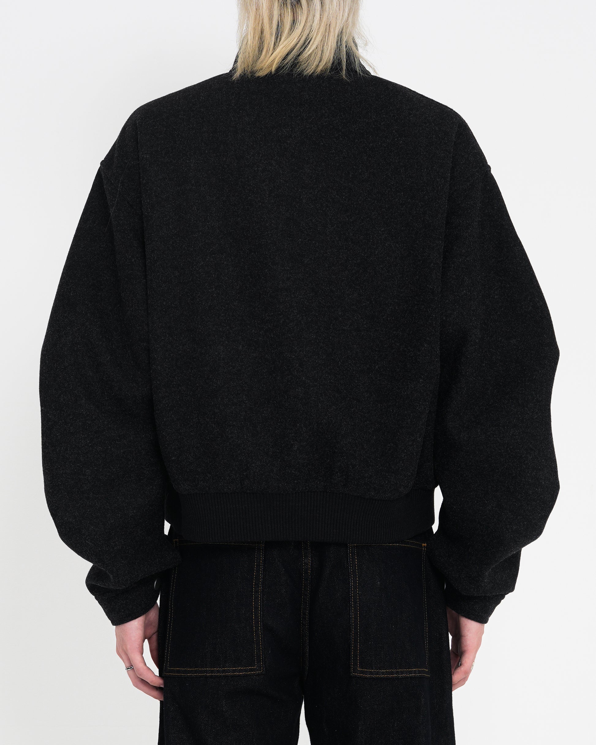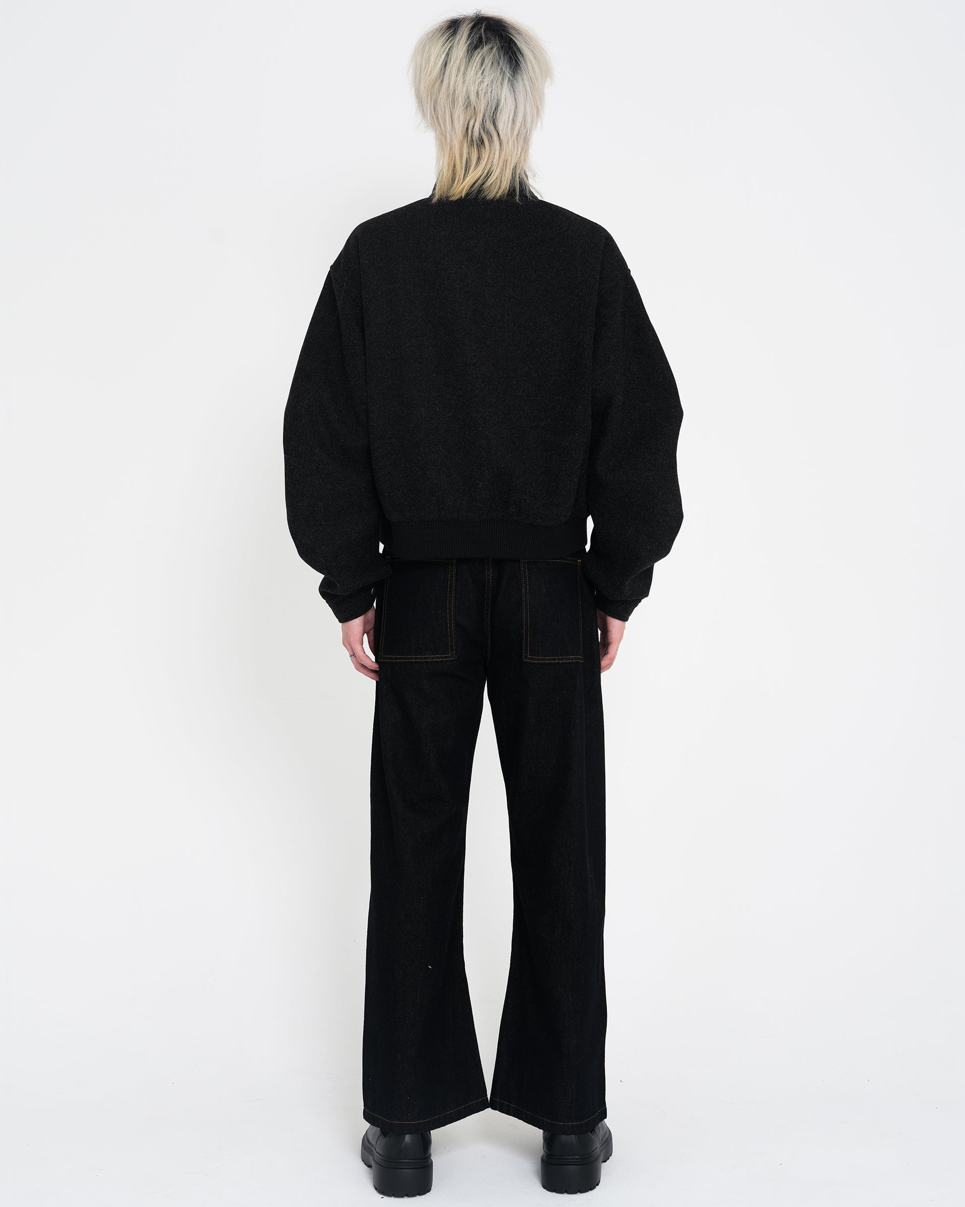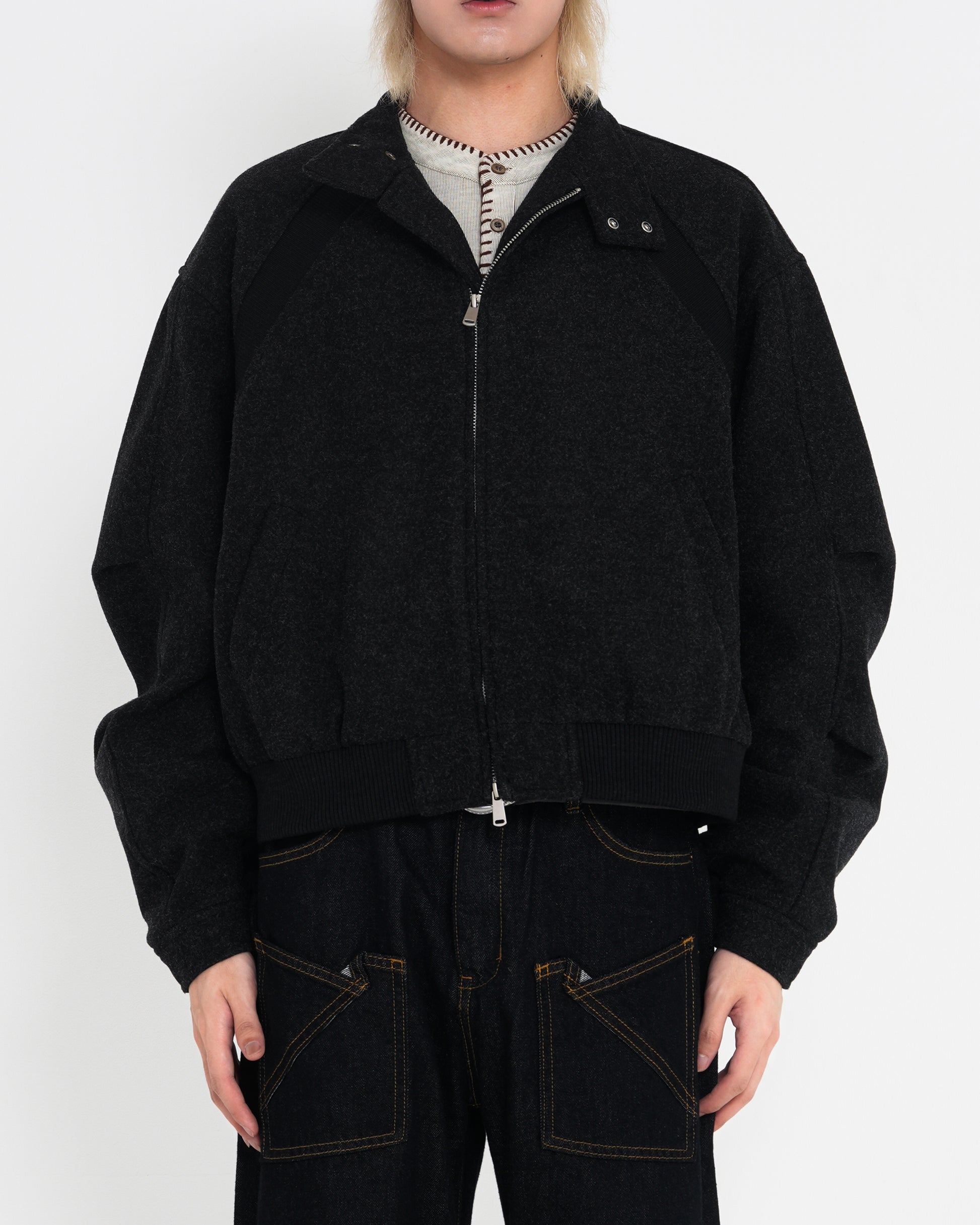 モード的な構築感と異素材コンビネーションで再構築したショートブルゾン。
