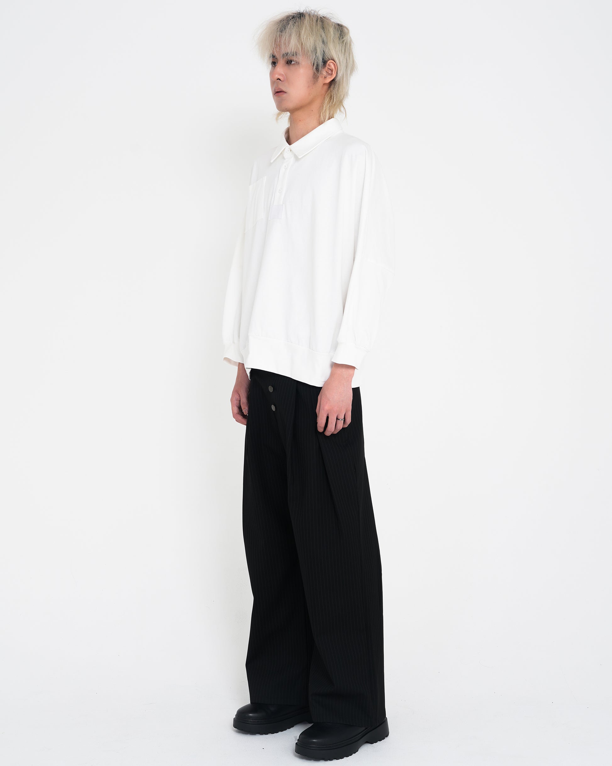 肘位置までスリーブの位置を落としているため、全体のシルエットがよりボックスに見える仕様に。