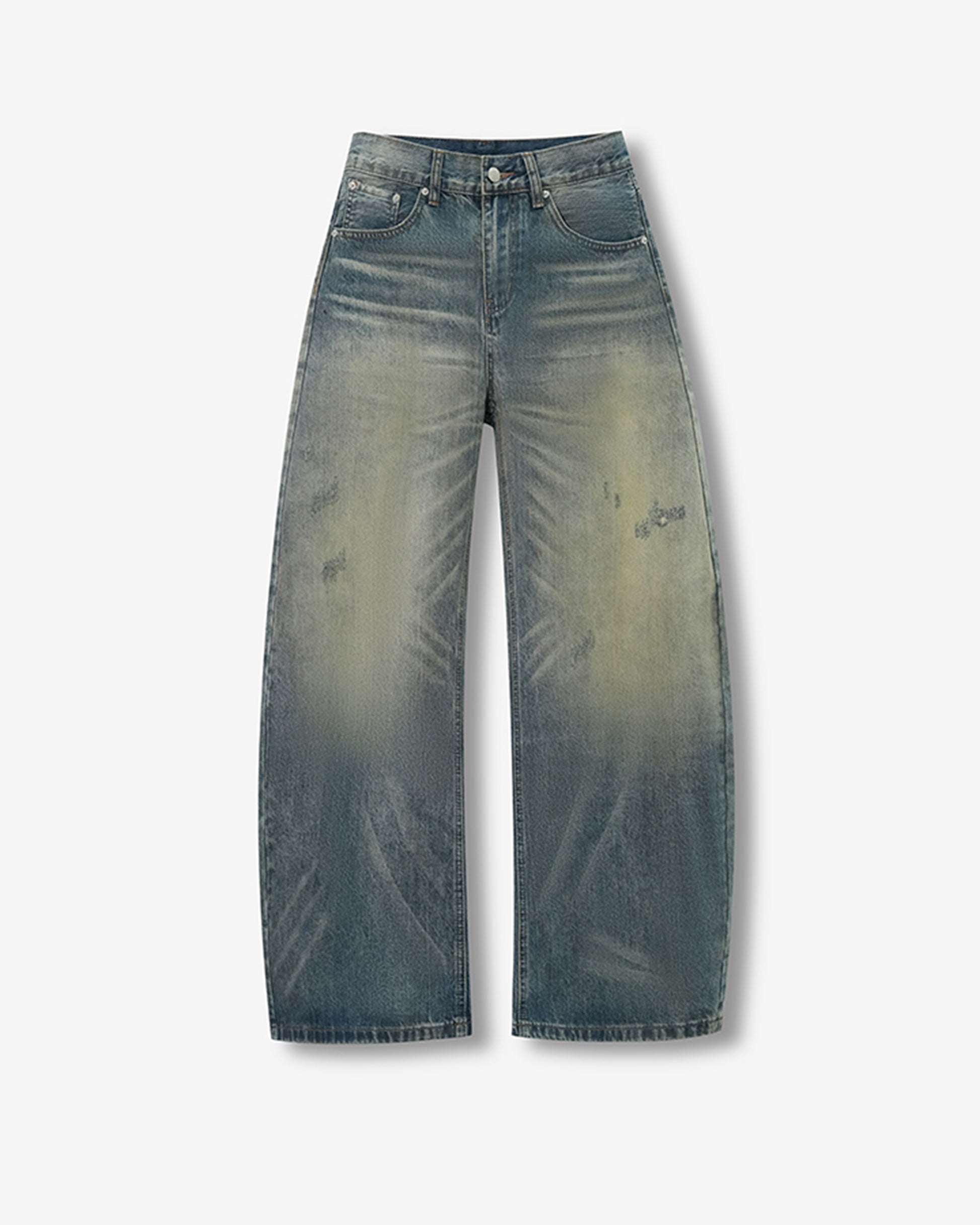 太ももから膝にかけてグラデーションのようにフェードが入り、ビンテージライクな仕上がり。玄人のような存在感を出せる。